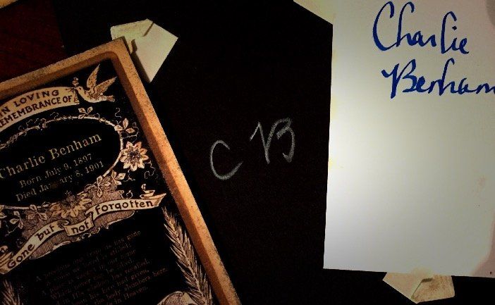 One of the photos is removed from the corners holding it. On the back is written the name of the little child. It matches the name on the memorial card. The performer continues to go through the images showing that each one matches, despite the performer never touching the photos or cards and multiple people making choices.
